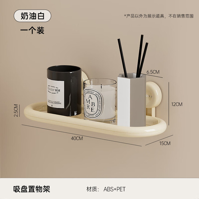 翡悦 吸盘置物架浴室免打孔卫生厕所洗手间收纳架免胶洗漱台架子 米色