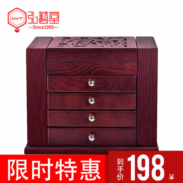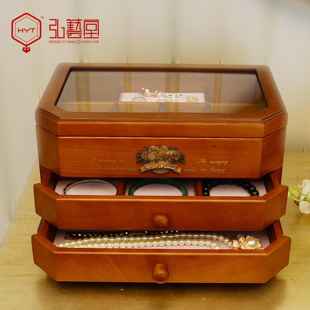 弘艺堂 实木首饰盒饰品收纳盒 新款创意多层木质礼物盒礼品盒