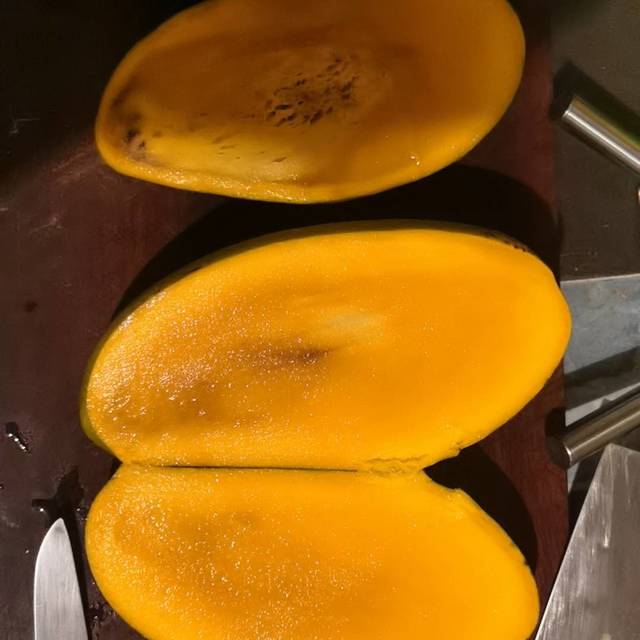 这次买的青芒是3斤一件,3件实付29.9共9斤,收到货一共5个大芒果。因为之前在网上买过两次芒果,到手总是有坏果,所以收到货第一时间打开检查,把品相不好的切开...