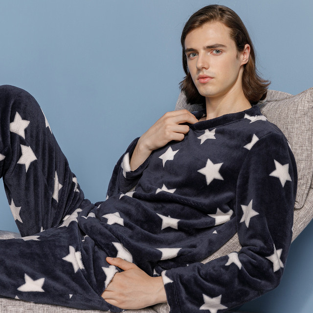 UM25 法兰绒长袖长裤套装睡衣男士家居服