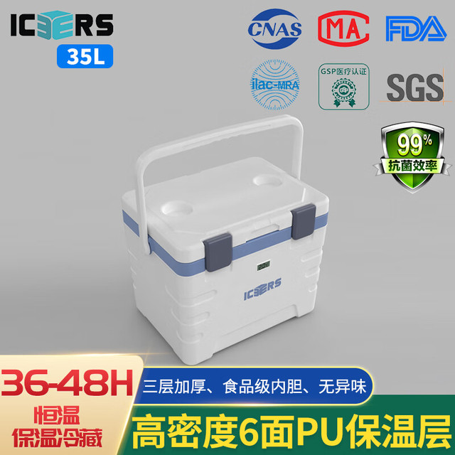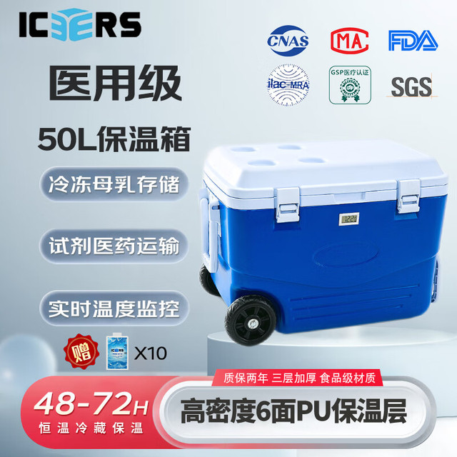ICERS 艾森斯)PU保温箱药品胰岛素医用冷藏箱保鲜箱 50升 带温度计显示款 蓝白色