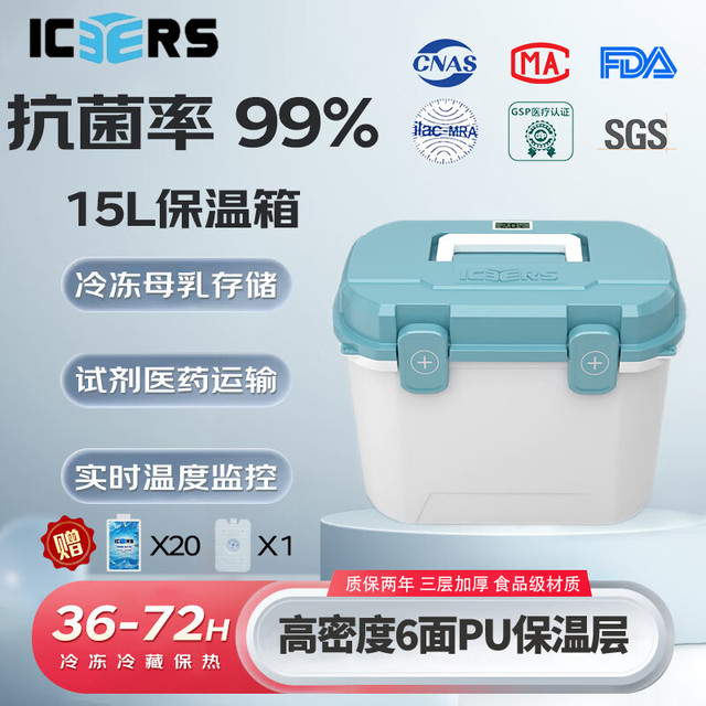 ICERS 艾森斯 15L 专业保温箱 PU医用抗菌冷藏箱 户外保热车载冰箱 带温显