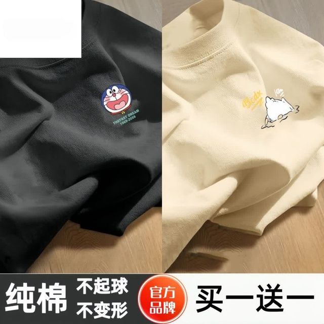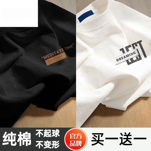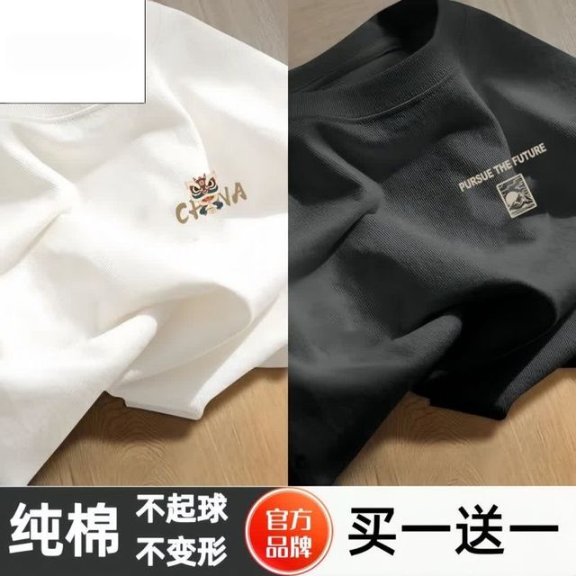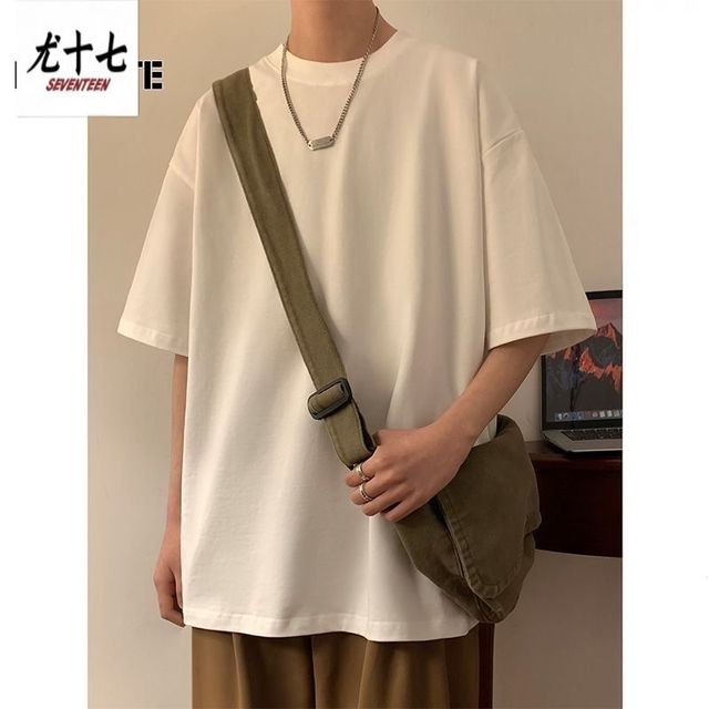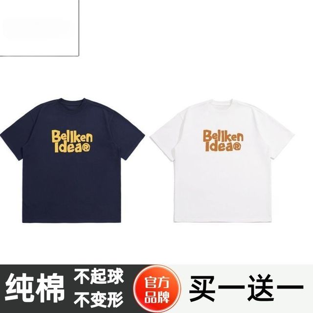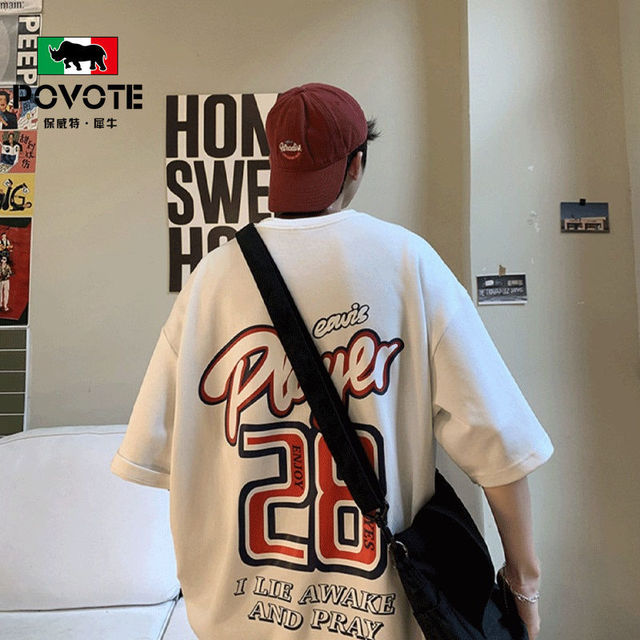 保威特犀牛 POVOTE 纯棉重磅不透日系字母T恤短袖男复古流行宽松情侣打底衫ins