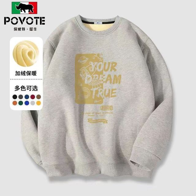 POVOTE 保威特犀牛 美式潮牌加绒加厚卫衣男秋冬季新款潮流宽松大码青少年外套