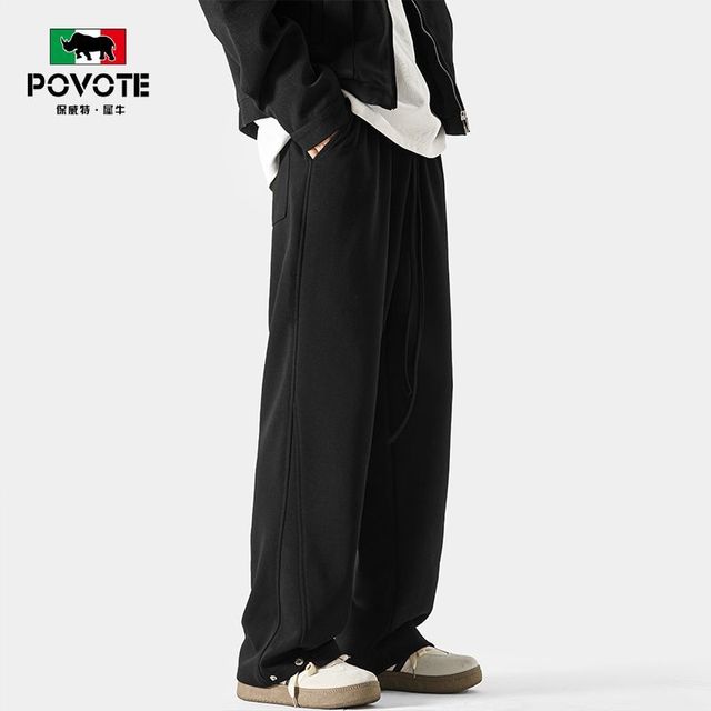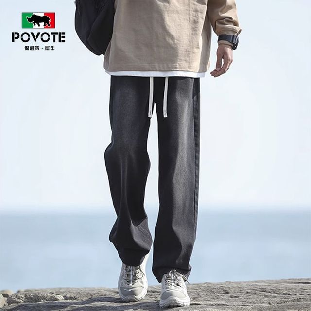 百亿补贴:POVOTE 保威特犀牛 水洗复古牛仔裤男秋冬新款美式宽松休闲百搭阔腿加绒长裤子