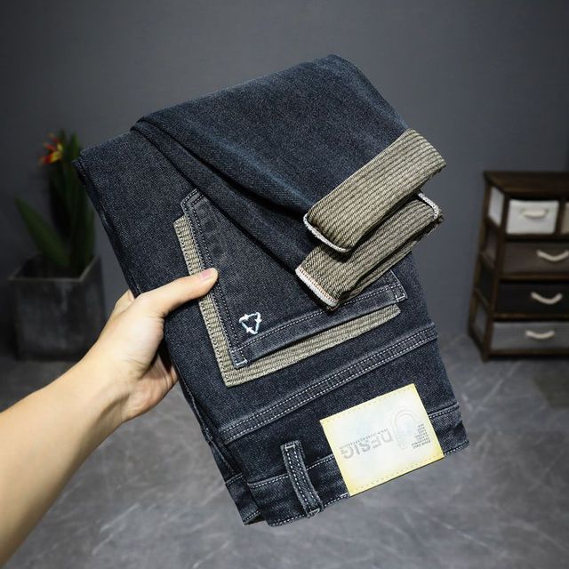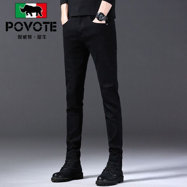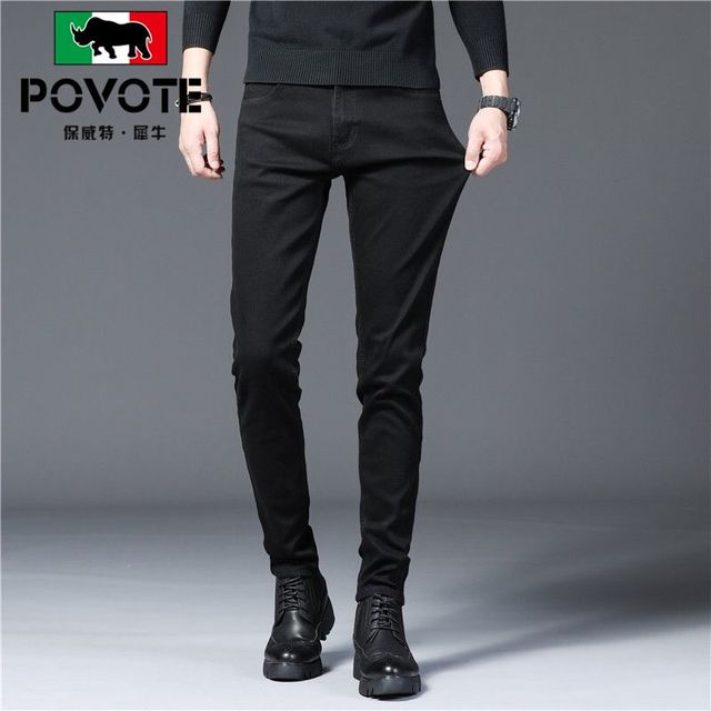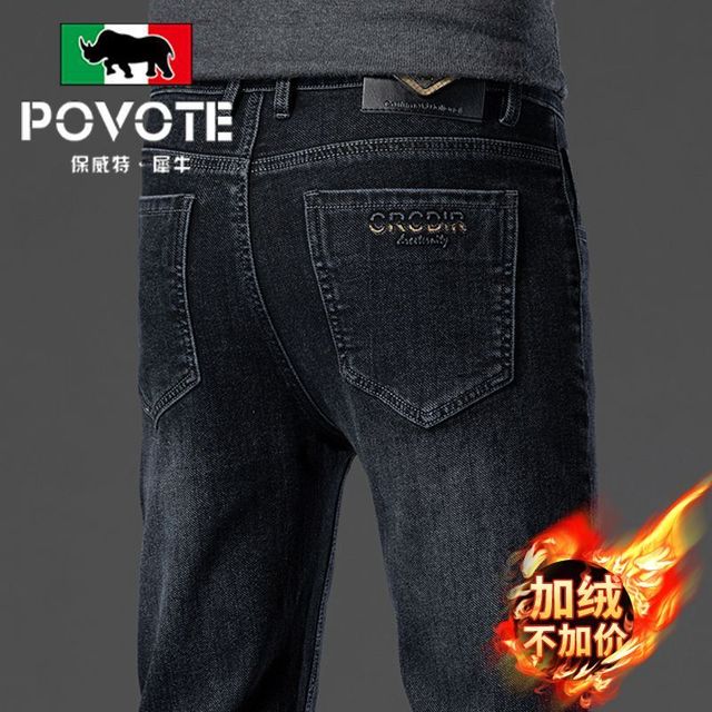 百亿补贴:POVOTE 保威特犀牛 高档牛仔裤男秋冬加绒弹力修身小脚裤子男裤长裤子男潮