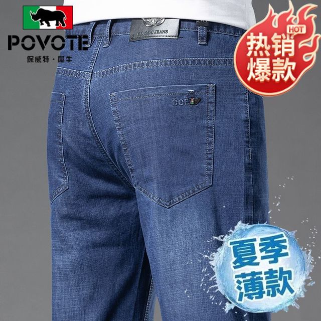 百亿补贴:POVOTE 保威特犀牛 春秋夏新款牛仔裤男士宽松直筒弹力高腰商务休闲长裤子