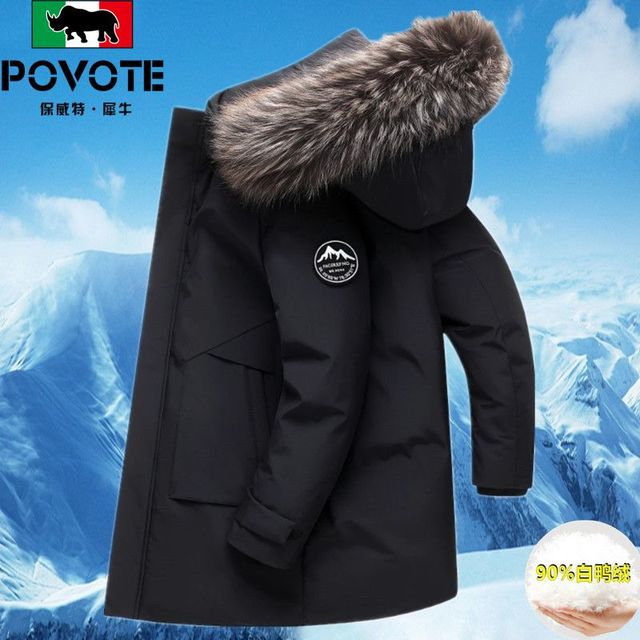 POVOTE 保威特犀牛 加厚男羽绒服男冬季2023新款中长款白鸭绒男大码装外套