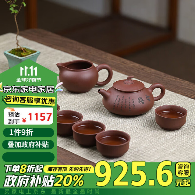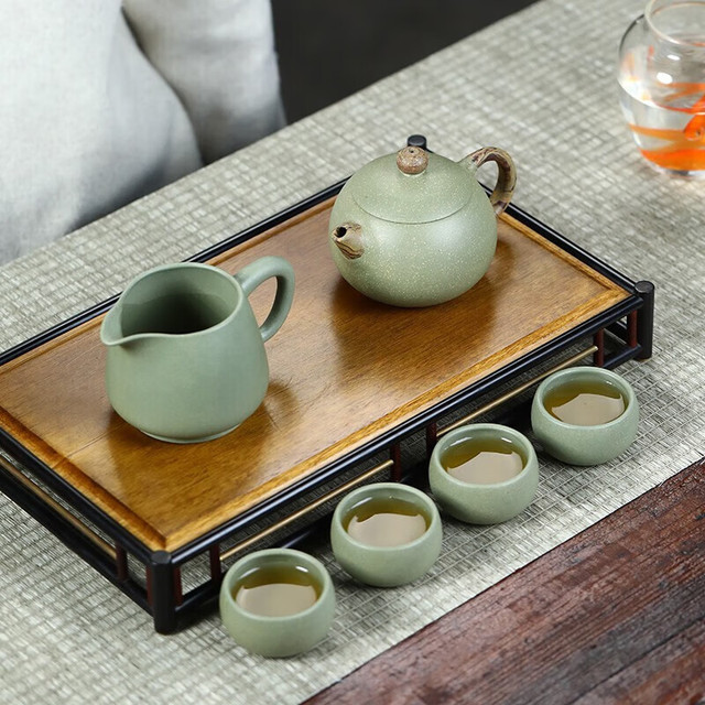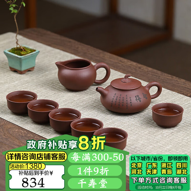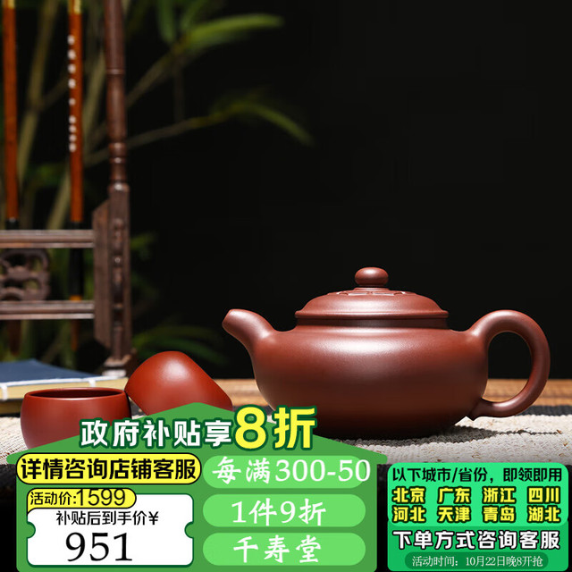千寿堂 紫砂壶 国助工尹占民老师手工制作茶壶宜兴手工壶豆青泥泡茶壶送礼礼盒装 豆青圆润西施套装234.9元(需用券)