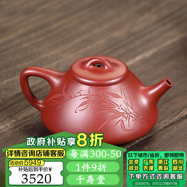 千寿堂 茶壶 宜兴紫砂壶西施壶功夫茶具泡茶壶 尹占民光版石瓢壶169.5元(需用券)