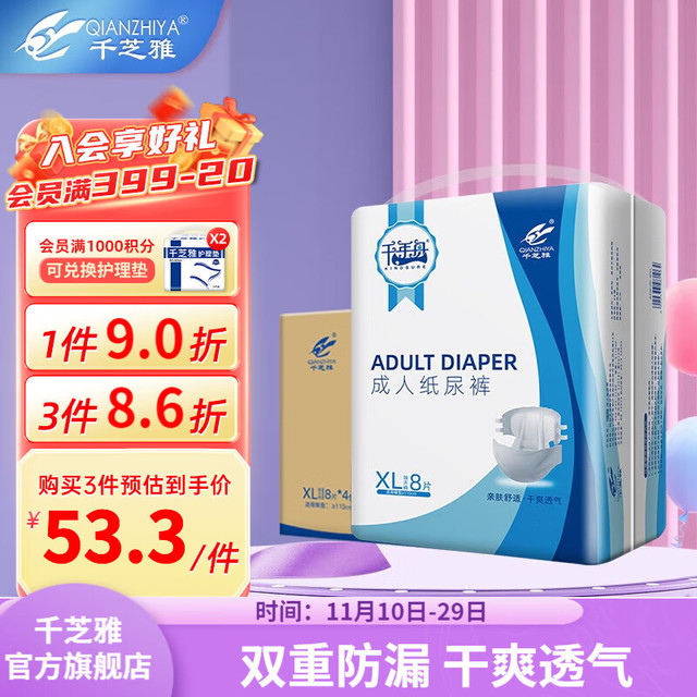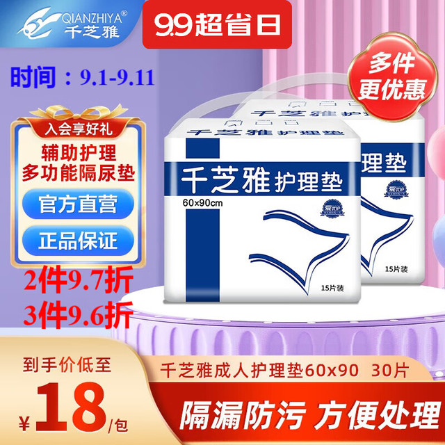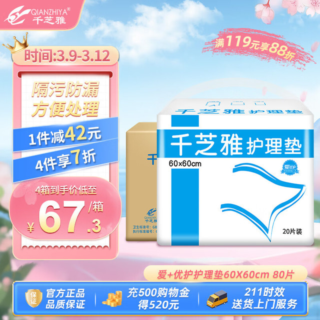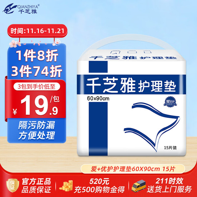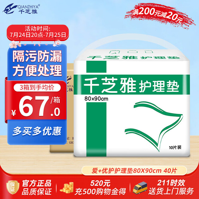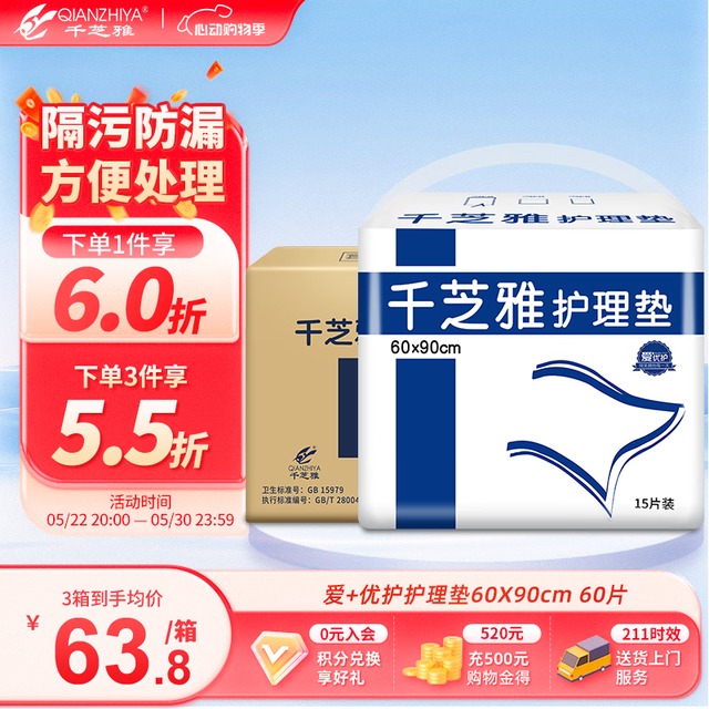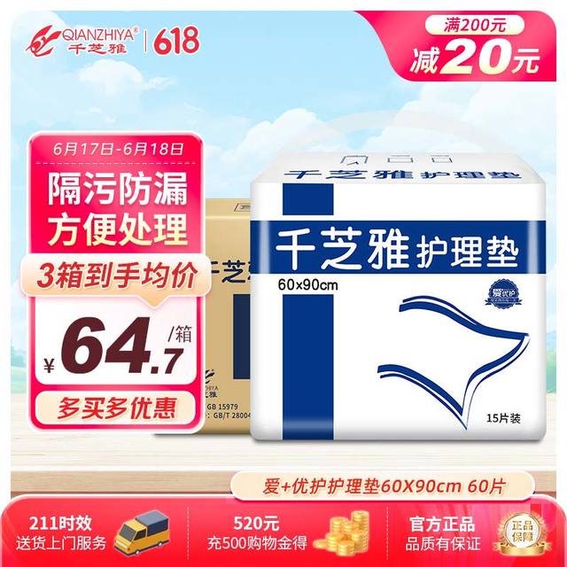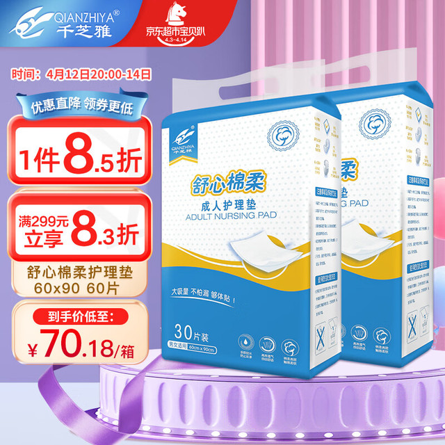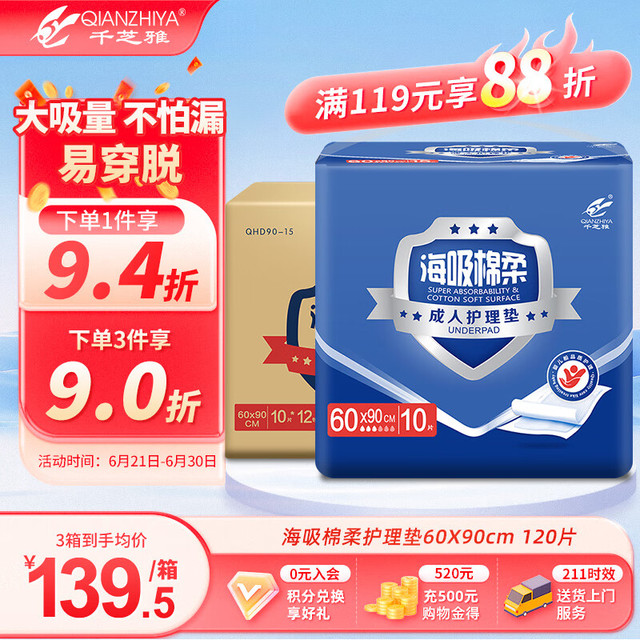 kidsyard 千芝雅 海吸绵柔 成人护理垫120片(尺寸:60cm126.13元(需买3件,共378.39元)