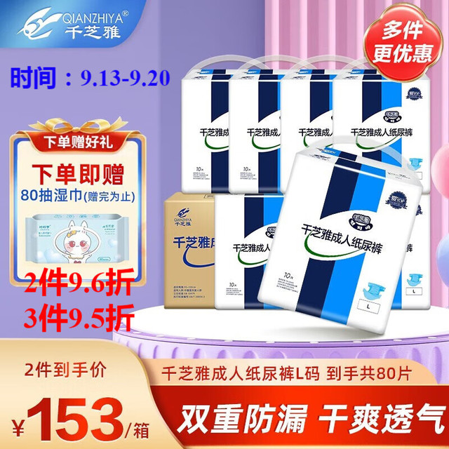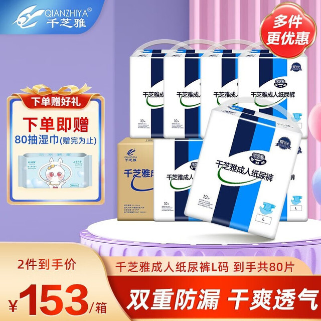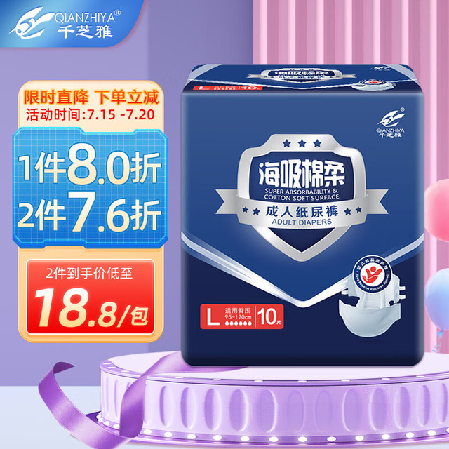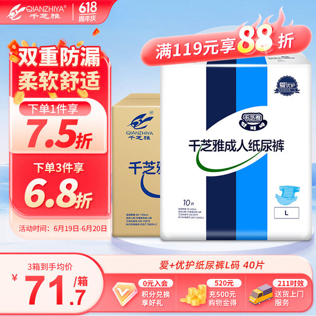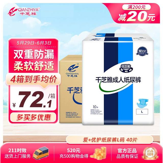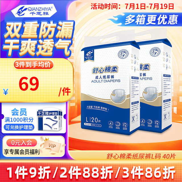 kidsyard 千芝雅 舒心棉柔成人纸尿裤中老年人尿不湿产妇尿裤 纸尿裤L码40片/箱62.31元(需买3件,共186.93元)
