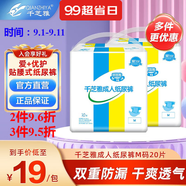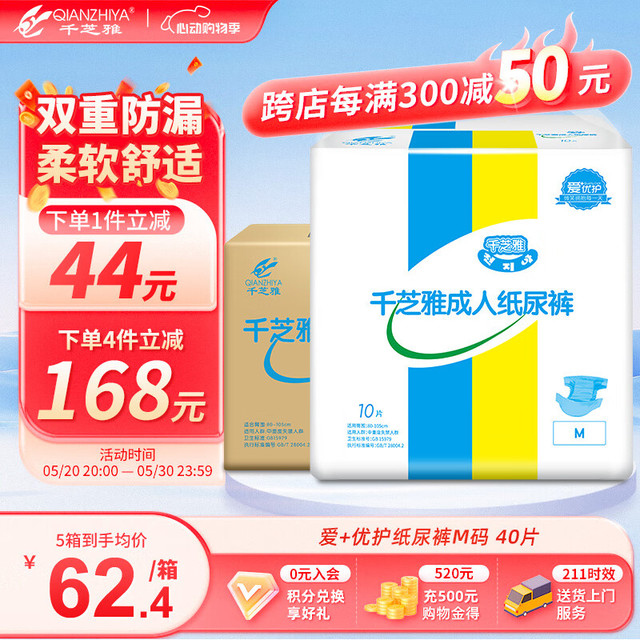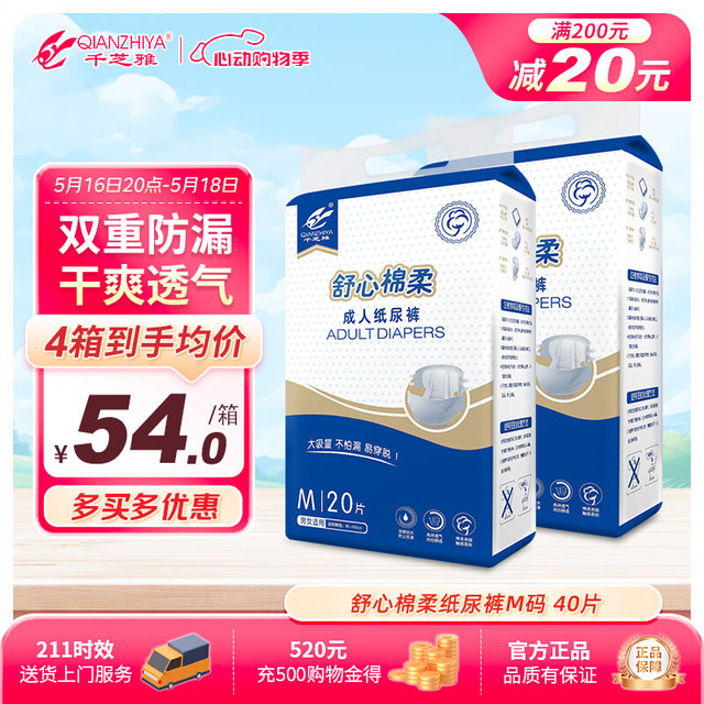 千芝雅 kidsyard 舒心棉柔 成人纸尿裤M40片 产妇尿不湿中码58.45元(需买3件,共175.35元)