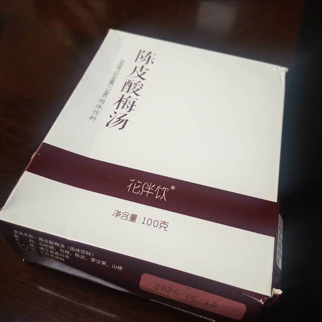 一杯少放点水,第一次冲的时候高估一小袋的浓度,淡淡的。跟纯的酸梅汤相比,这个偏酸偏陈皮偏药味,一看厂家,果然药厂出品。炎炎夏日,来杯酸梅汤吧。