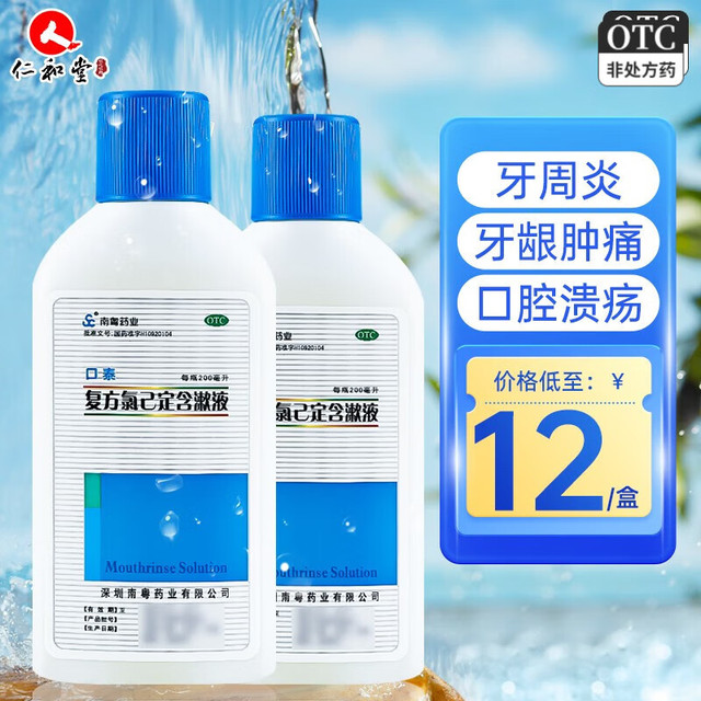 口泰 南粤口泰 复方氯己定含漱液200ml 牙龈炎 冠周炎 口腔黏膜炎 牙龈出血 口腔溃疡 牙周脓肿