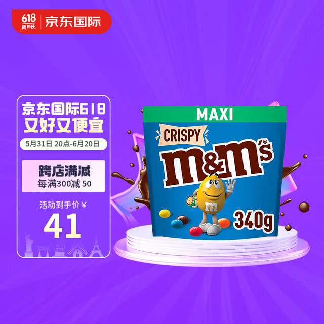 M&M ’S德国原装进口牛奶夹心巧克力脆芯豆 340g儿童休闲零食糖果mm豆