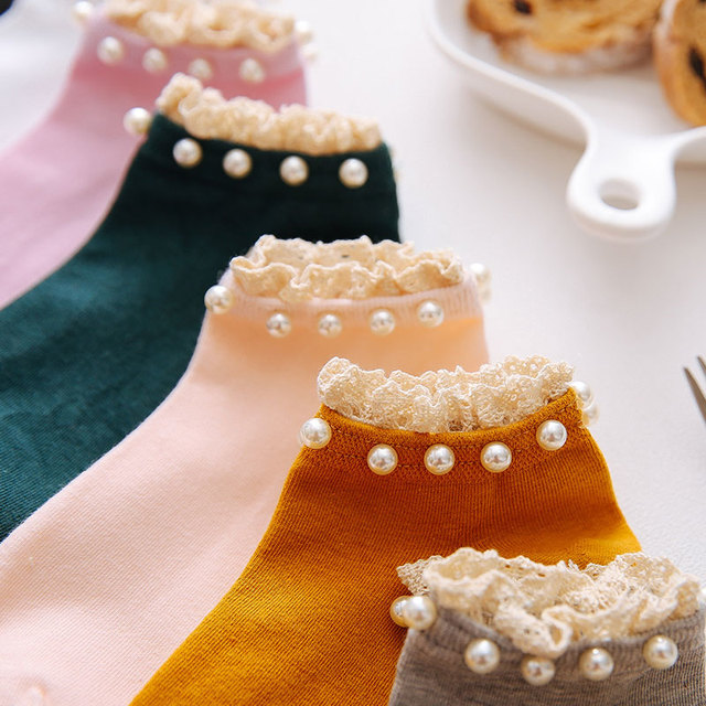 蕾丝袜子女潮短袜纯棉浅口韩国可爱花边日系夏季薄款短筒珍珠袜子