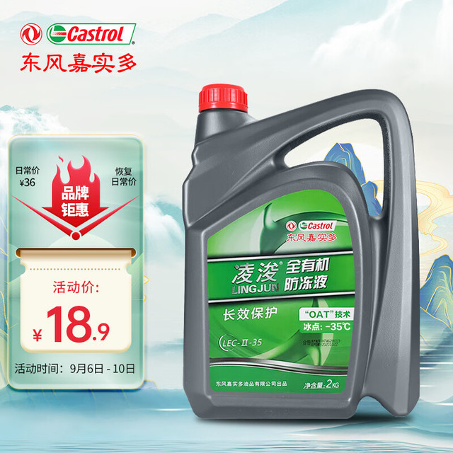 东风嘉实多 凌浚 有机型(OAT)汽车发动机乙二醇防冻液冷却液水箱宝 -35℃ 蓝绿色 2KG冲冲冲冲呀值得信赖拥有呀。