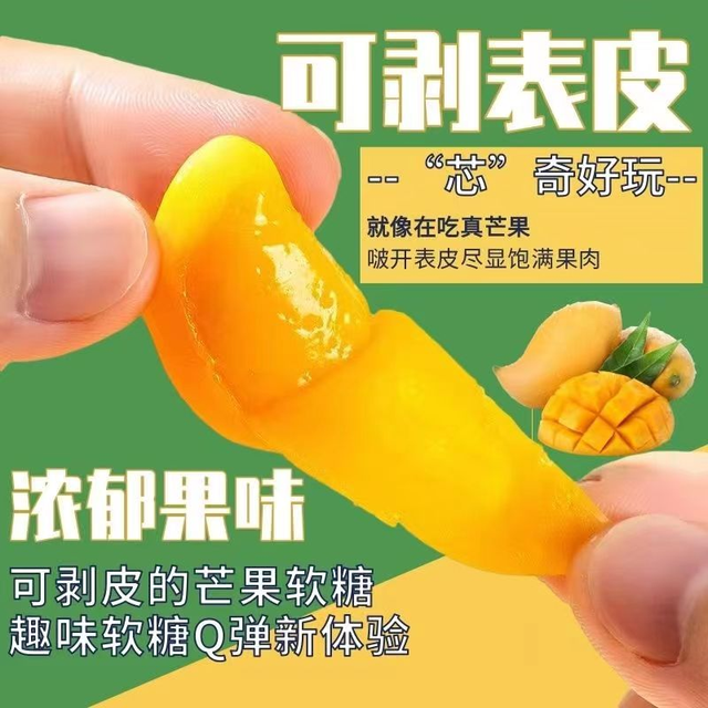 趣味 剥皮芒果味嗨吃软糖扒皮青芒果酸甜水果糖办公室休闲零食喜糖