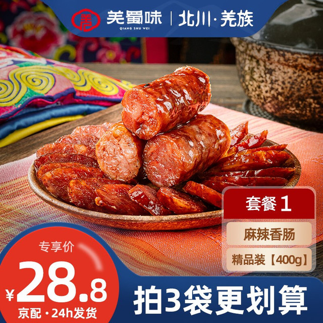 移动端:趣味 羌蜀味 麻辣香肠正宗四川特产烟熏腊肠熟食腊味 麻辣香肠400g