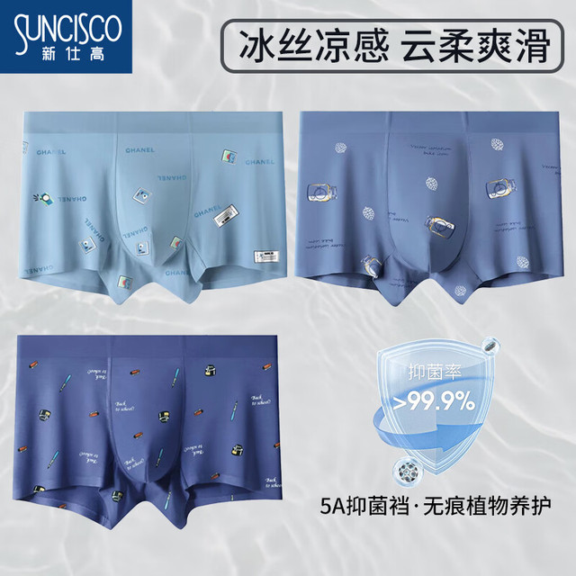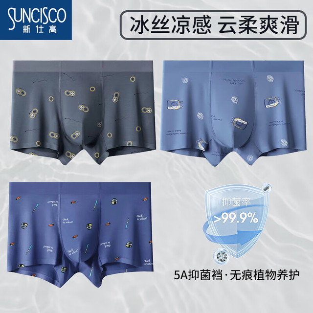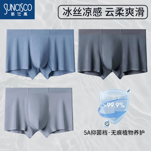 新仕高 SUNCISCO 青少年内裤男平角冰丝无痕网眼透气5A抗菌四角裤3条装017 XL57.6元(需买3件,共172.8元)