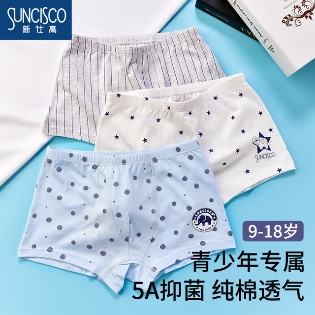 SUNCISCO 新仕高 青少年内裤男童平角初中学生12-16岁发育期大童儿童四角裤001 16052.3元(需买2件,共104.6元)