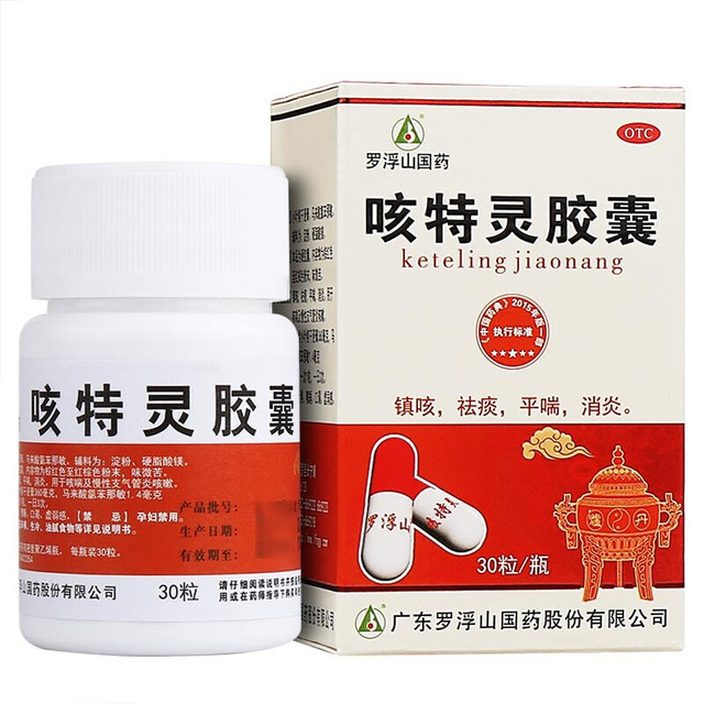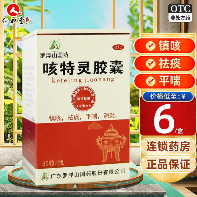 移动端:罗浮山 咳特灵胶囊 30粒 镇咳,祛痰,平喘,消炎。用于咳喘及慢性支气管炎咳嗽。 1盒