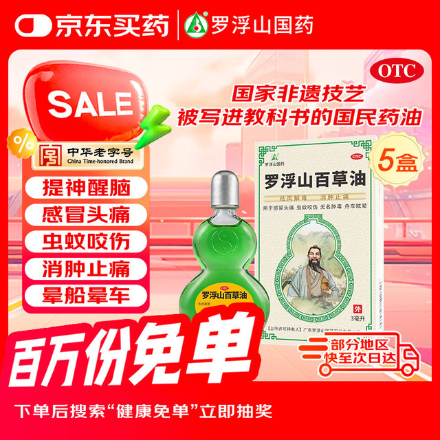 移动端、京东百亿补贴:罗浮山 百草油 3ml*1瓶/盒*5盒 夏季防暑 提神醒家出行必备