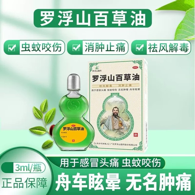 罗浮山百草油,一款集传统中草药智慧与现代科技于一体的外用良药,3ml的精致包装,轻松携带,随时为您解决皮肤瘙痒问题。采用两面针、徐长卿等79种名贵中草药研制而成...