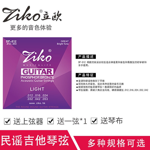ZIKO香港立欧民谣吉他琴弦木吉他琴弦吉他套弦吉他新手入门琴弦一套 DP-012 (12-53)磷青铜