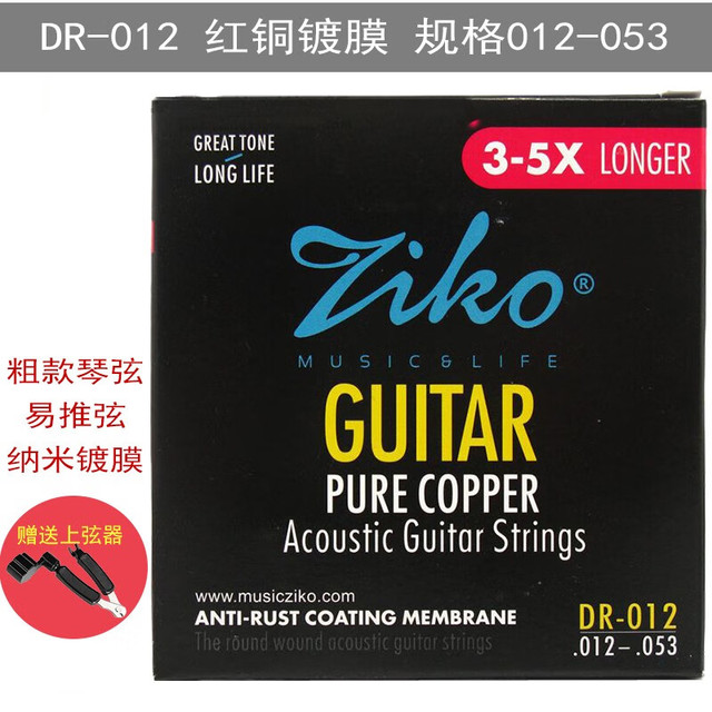 ZIKO立欧民谣吉他琴弦1-6弦套装6根吉他弦 镀膜防锈木吉它镀膜琴弦 DR-012红铜012规格