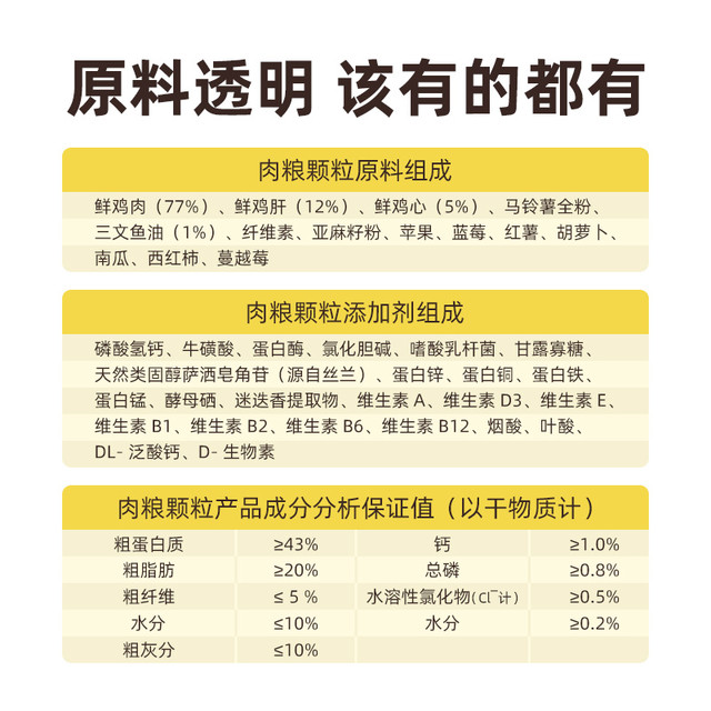 该价格商品规格:食品口味:鲜鸡肉&兔肉【增肌长肉】;净含量:1.8kg天猫商城该商品参加满350减90元优惠券(需在移动端详情页内领取)的促销活动,下单3件到手... 阅读全文
