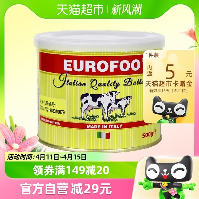 88VIP:EUROFOO 尤乐傅罐装淡味黄油500g发酵动物黄油煎牛排