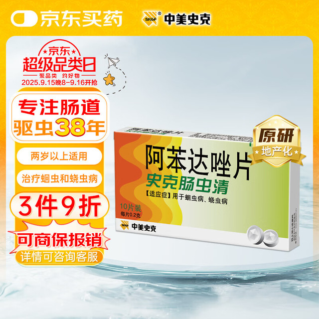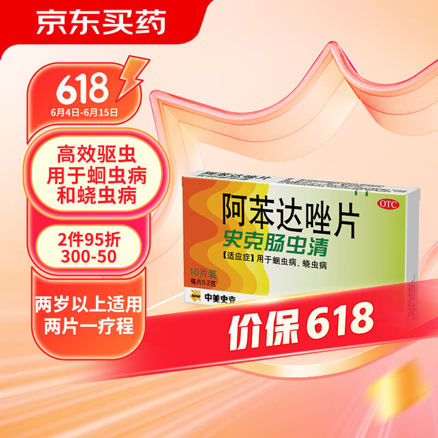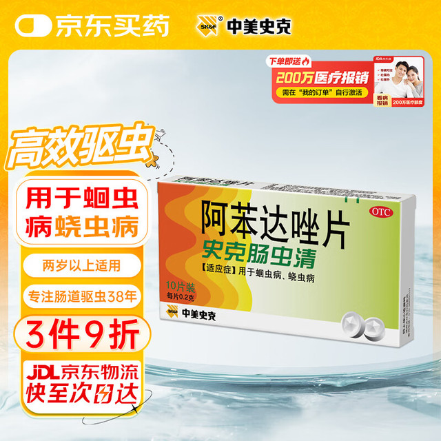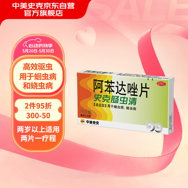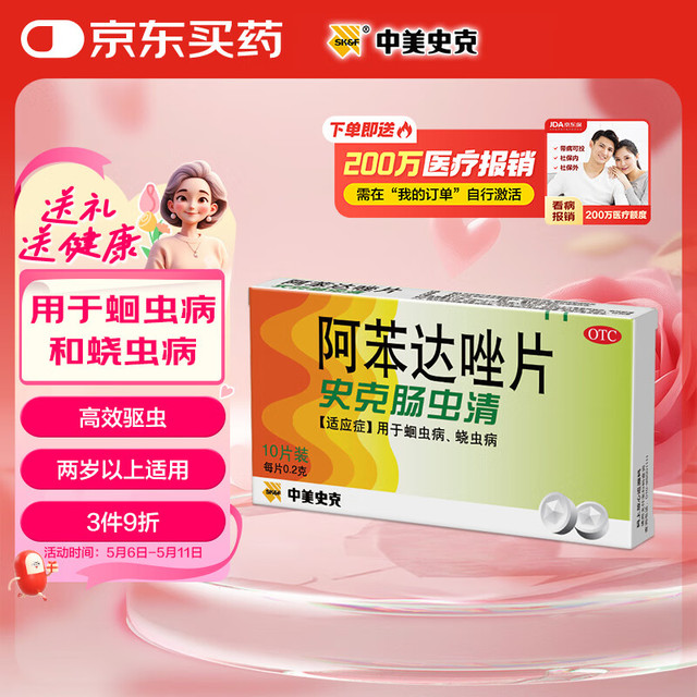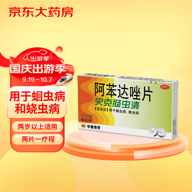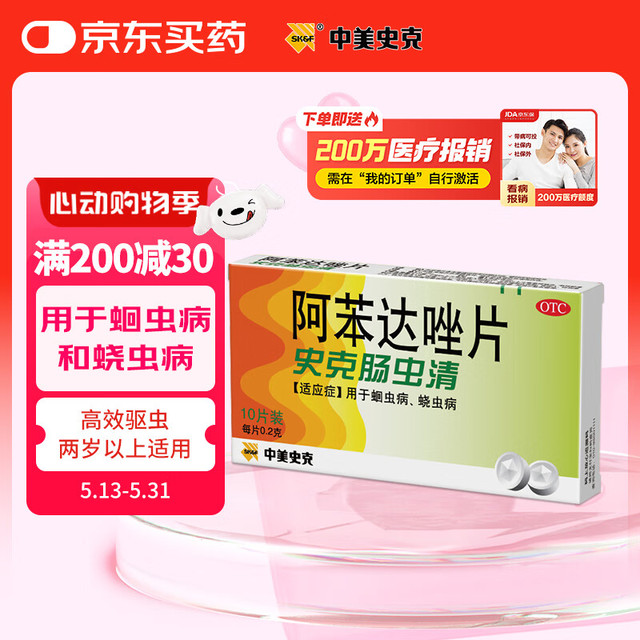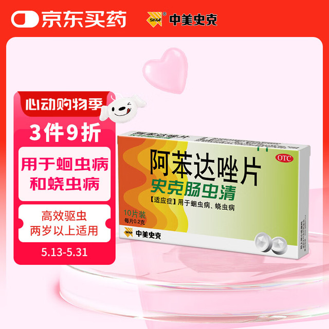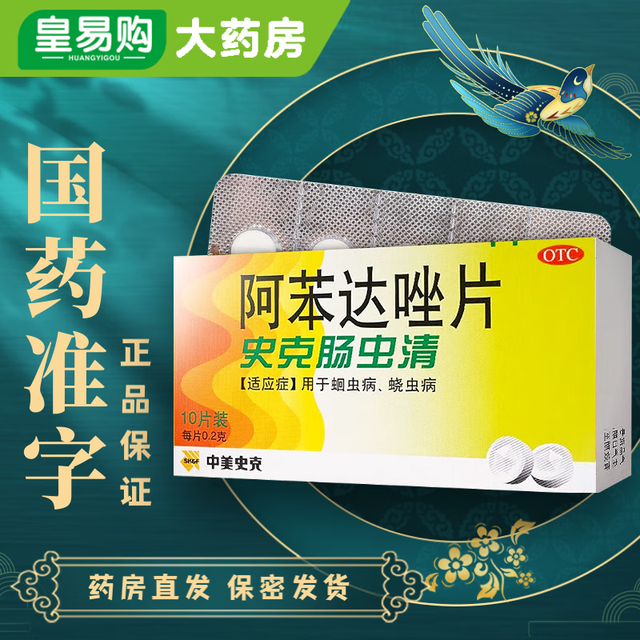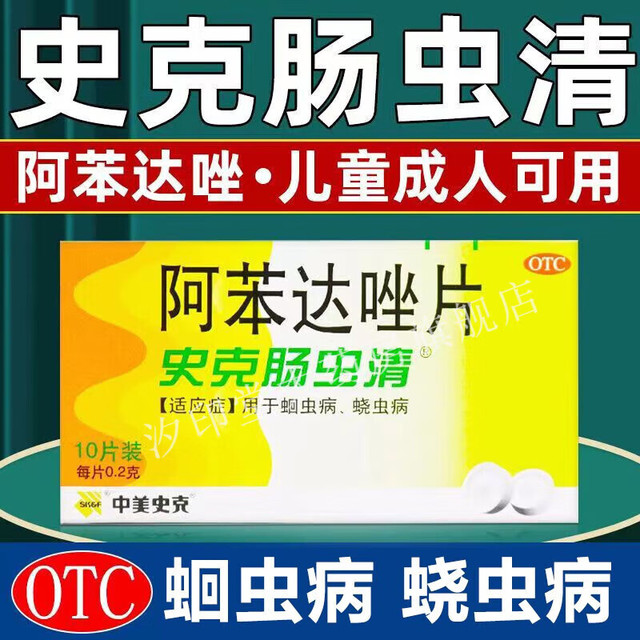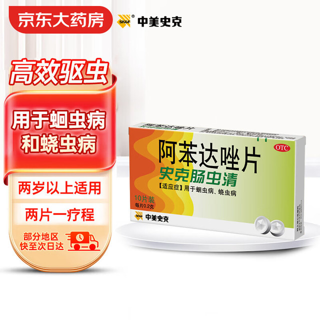史克肠虫清 Albendazole Tablets 阿苯达唑片 0.2g*10片 用于蛔虫病 蛲虫病11.78元(需用券)