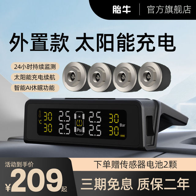 胎牛 胎压监测器传感器内外置汽车无线太阳能高精度通用轮胎检测仪199元(需用券)