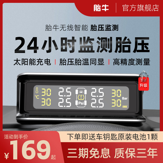 胎牛 360胎牛胎压监测器传感器内外置汽车无线太阳能高精度轮胎检测仪169元(需用券)