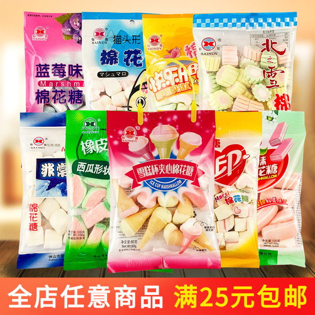 8袋包邮 仙笛雪糕杯猫头心形蓝莓草莓橡皮棉花糖袋装儿童休闲零食