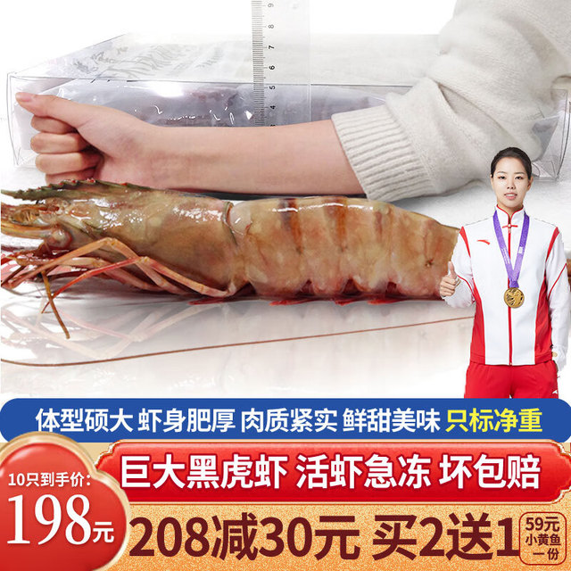 梦尝客 黑虎虾特大号活冻大虾巨型超大 国产年货过年春节老虎虾 净900g 10只 长18-20cm159.6元(需买3件,共478.8元)
