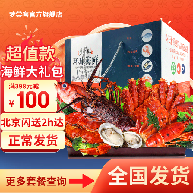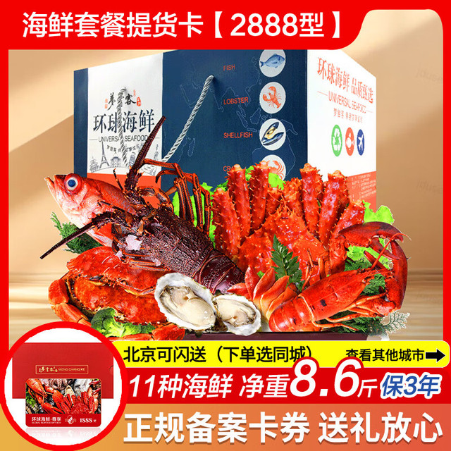 梦尝客 海鲜礼盒大礼包 海鲜卡券38节送礼女性客户生鲜券 2888型11种/8-10人/净8.6斤778元(需用券)