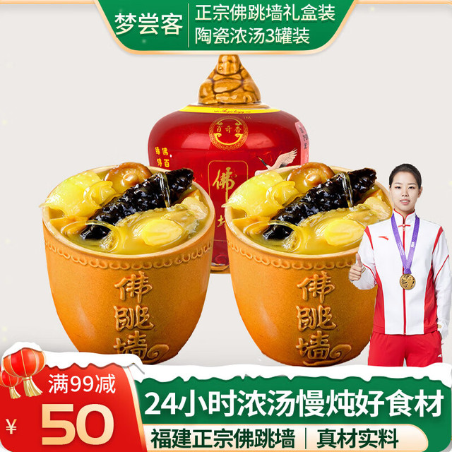 梦尝客 福建佛跳墙加热即食海参鲍鱼佛跳墙盆菜年货礼盒过年春节礼品 佛跳墙200g*3瓶装(简装)92.33元(需买3件,共277元)