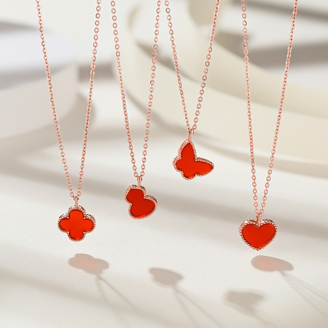GMOND 吉盟 18K金四叶草爱心蝴蝶玛瑙吊坠彩金玫瑰金项链女