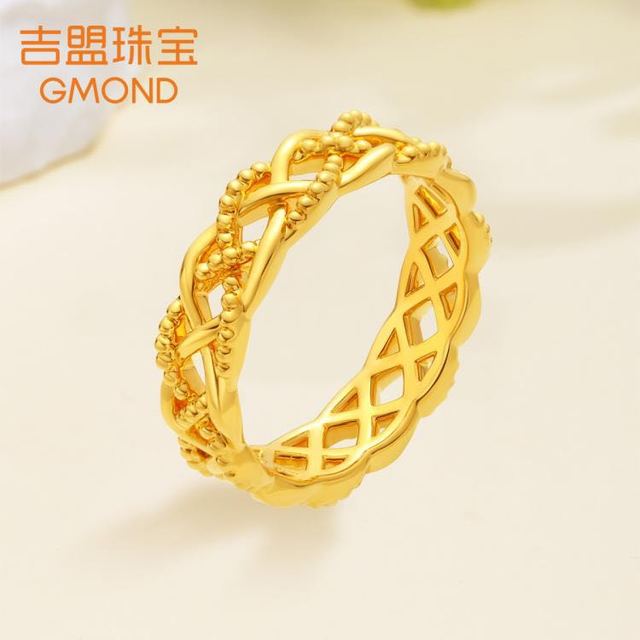 GMOND 吉盟 5D黄金戒指女足金蕾丝固口戒指指环