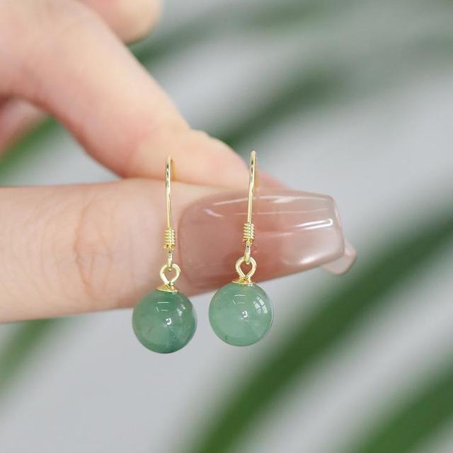 吉盟 GMOND 珠宝 GMOND 925银东陵玉仙文艺气质圆珠耳环女优雅温婉轻奢高级感耳钩耳坠