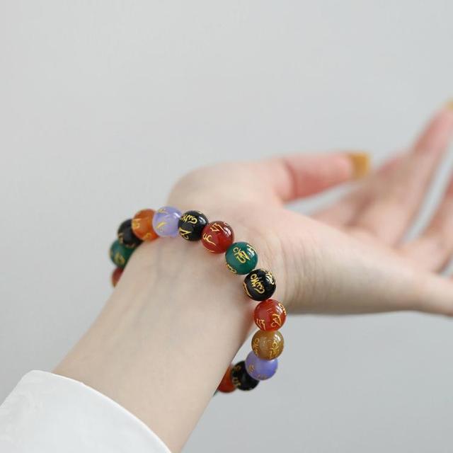 吉盟 GMOND 珠宝 GMOND 七彩玛瑙六字真言圆珠手链男女款新中式国潮风时尚百搭手串