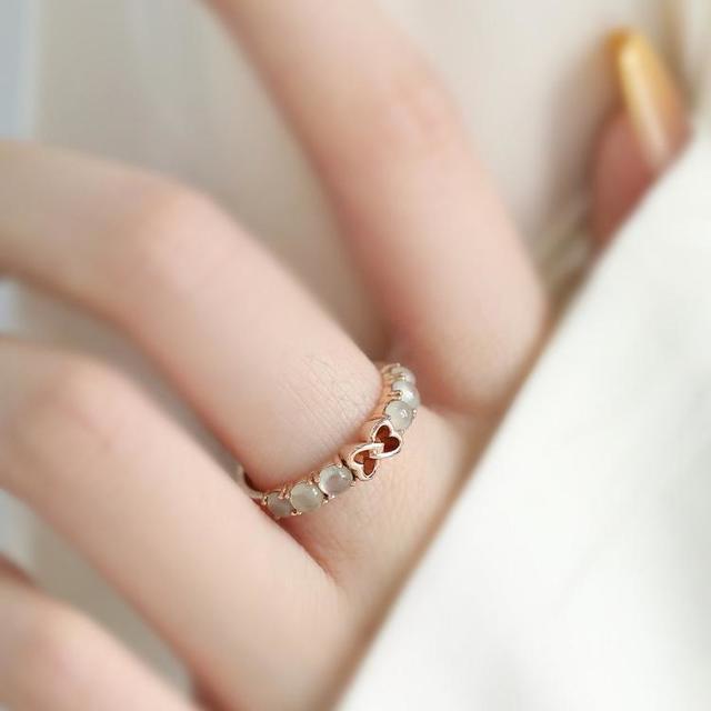 吉盟 GMOND 珠宝 GMOND 925银翡翠A货心心相印开口戒指女精致气质大方时尚百搭食指戒