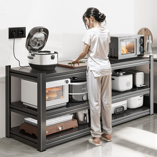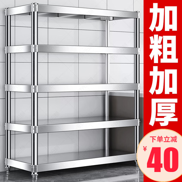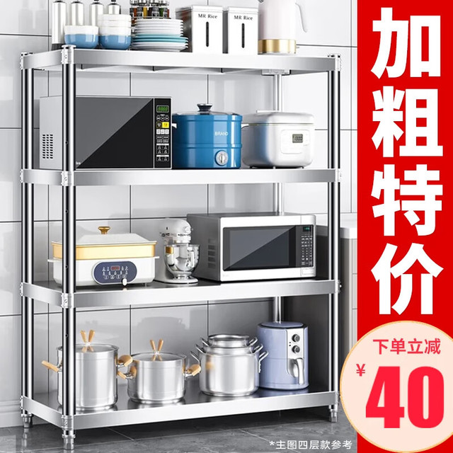 移动端、京东百亿补贴:时光旧巷 厨房置物架落地多层不锈钢货架家用储物架微波炉烤箱收纳架子 长6030120