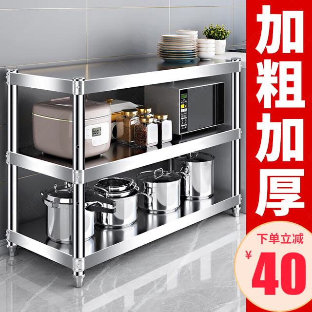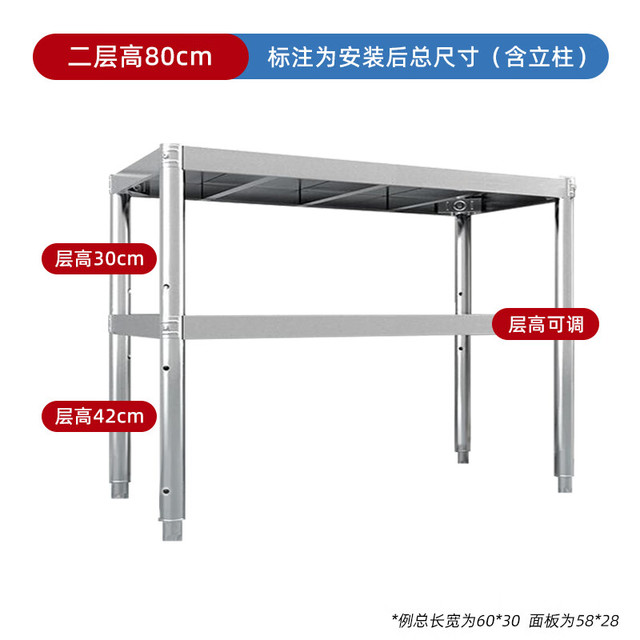 移动端、京东百亿补贴:时光旧巷 不锈钢厨房操作台商用工作台不锈钢置物架桌子长方形台面灶台架 特厚加粗 长60宽40高80 二层