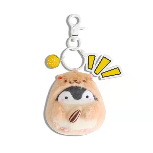 致年华 可爱正能量企鹅变仓鼠抱瓜子毛绒公仔包挂件日系卡通挂饰礼物 粉色++汉堡扣子 8cm
