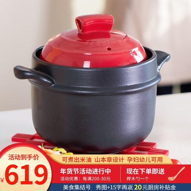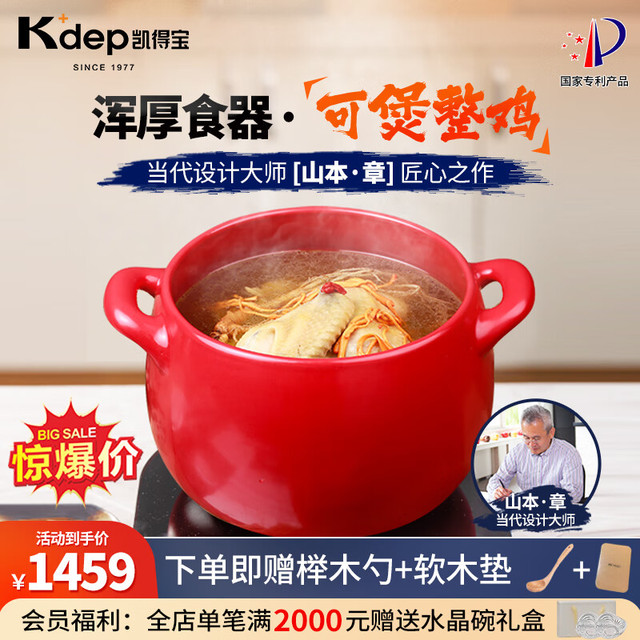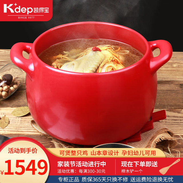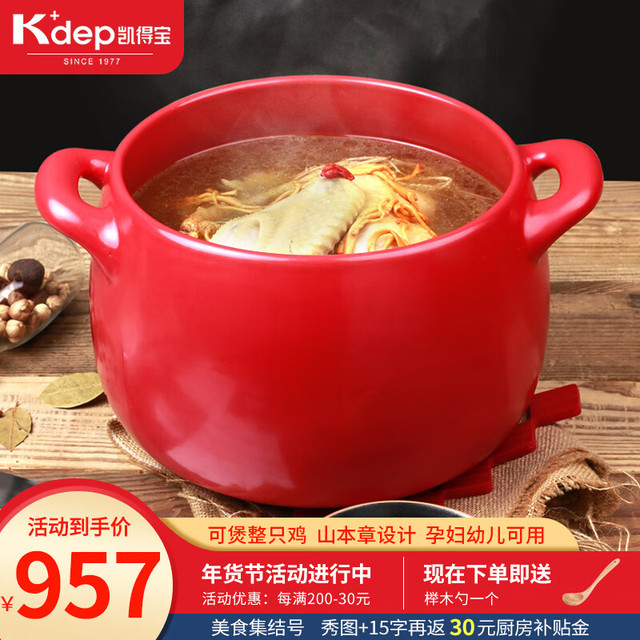 K dep 凯得宝 K+dep) 日本砂锅炖锅 陶瓷煲汤锅煲仔饭 大小沙锅 明火耐高温汤煲 深锅 6.5L 红色