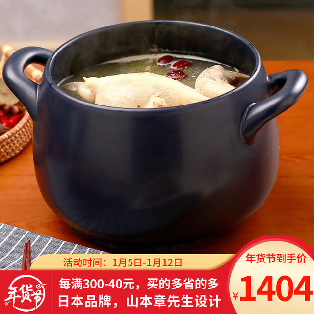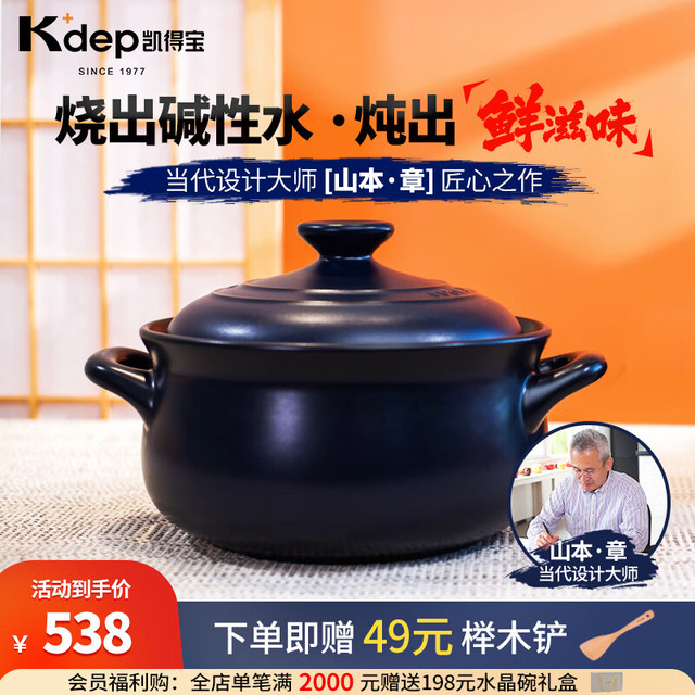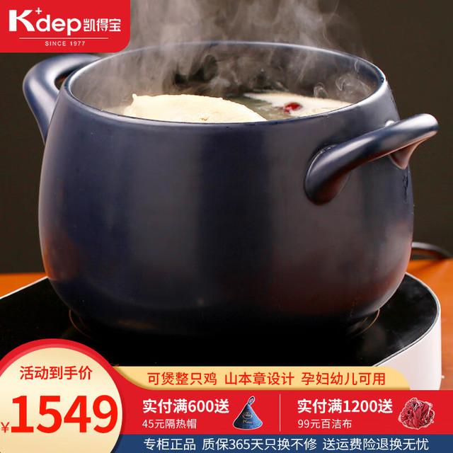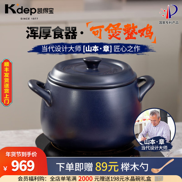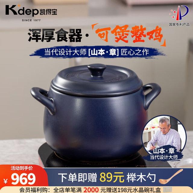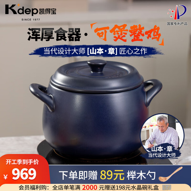 K dep 凯得宝 K+dep) 砂锅陶瓷锅 整鸡煲汤 煮粥 养生熬中药 明火耐高温 沙锅 深锅5-8人用 6.5L 深蓝色+硅胶垫